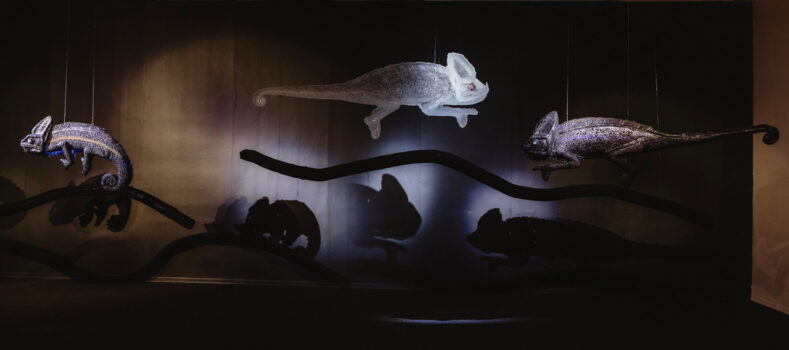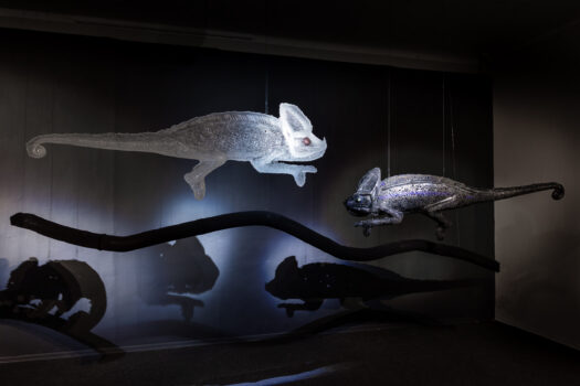 With this installation, the artist is trying to find the recipe for harmony – she developed a world made up of fantastic creatures. These entities have but one language to express their emotions: that of colours. Joy, pain or arousal get projected as hues and shades of their skin. Made from glass, they’re partially transparent, seemingly immaterial and submerged in water, as if they’ve been transported from some lost continent, such as Lemuria.